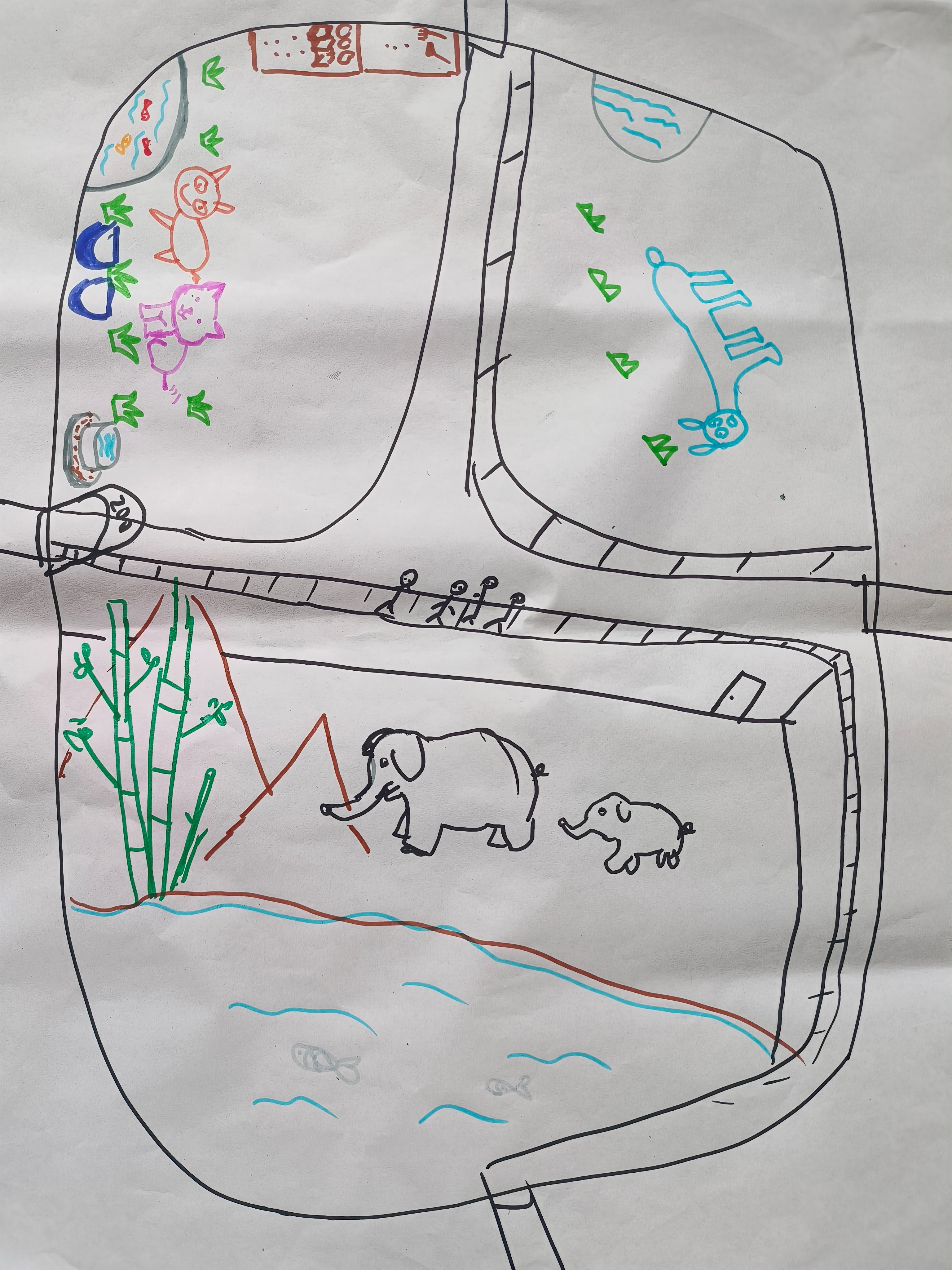 在最后一次团体辅导中,何老师带领同学们继续感受当下的感觉,通过“我最喜欢的动物”,组成“小小动物园”。在绘画过程中,何老师请同学们选择代表自己的动物或喜爱的动物进行个人绘画,然后大家一起合作,建立一个动物园并将自己的动物放入其中。根据同学们绘画的作品,何老师结合心理学原理从多个角度对同学们的内心活动进行了分析。同学们看到世界的多样性,正如一个小小动物园,是由不同的动物构成,引导同学们学会接纳自己尊重别人。