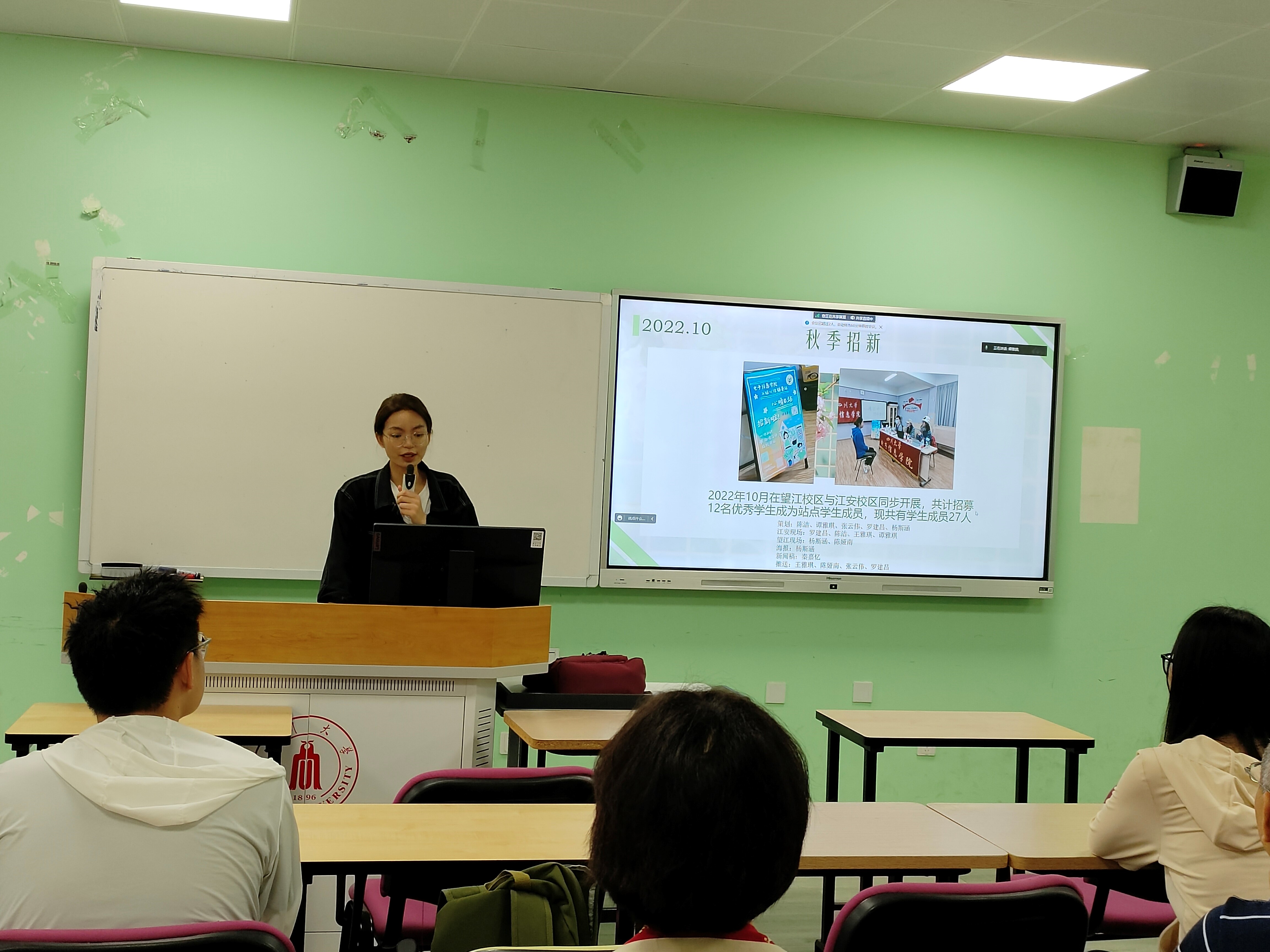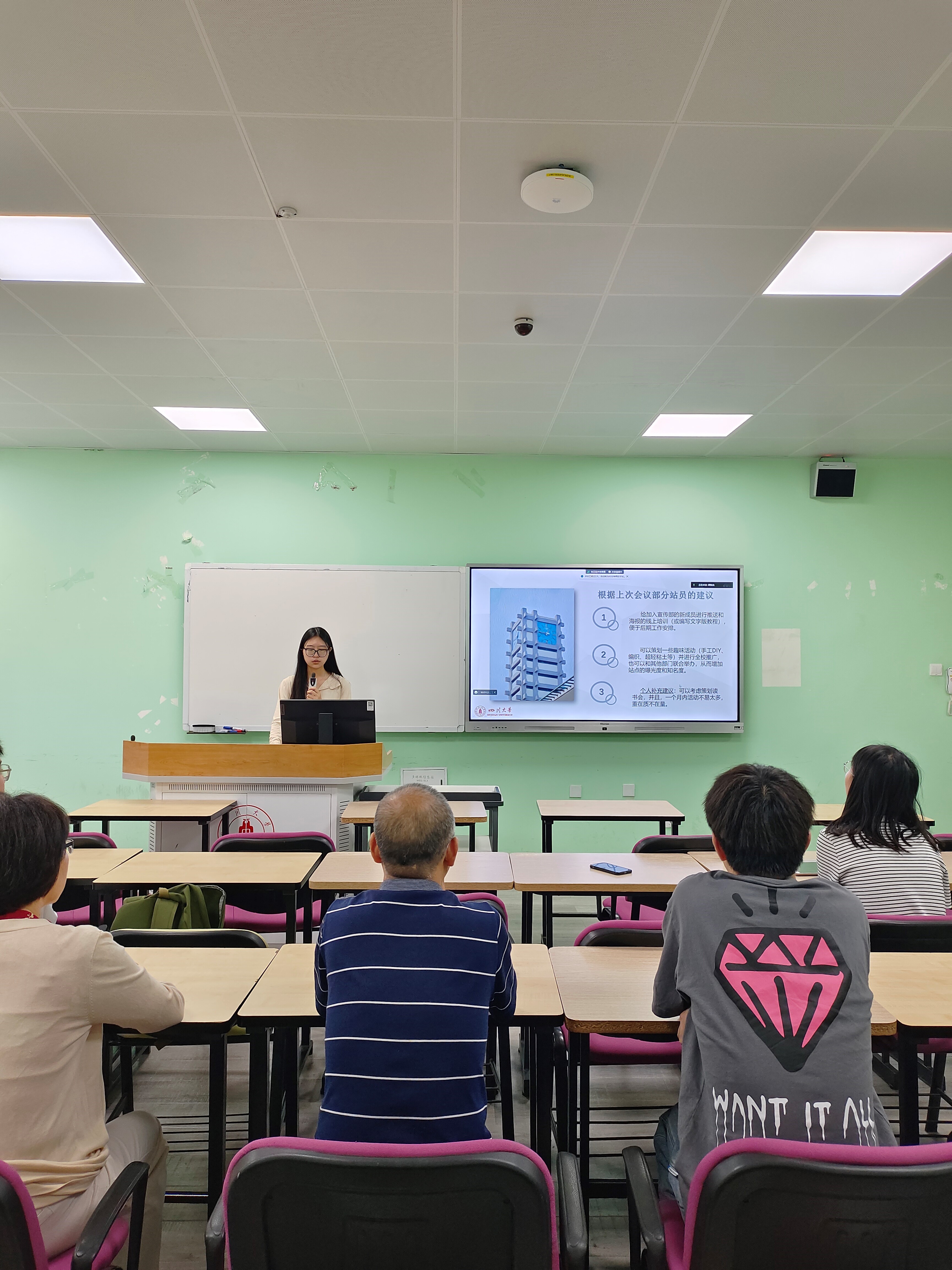 本次换届大会由谭雅琪站长主持。谭雅琪首先对上一学年公司二级心理辅导站开展的系列工作进行总结,并对各项活动取得的成效以及存在的问题不足进行了说明。接下来,谭雅琪对上一学年公司二级心理辅导站取得的重要成果进行展示介绍,包括活动室建设、文创周边、宣传海报以及公众号建设四个方面,并对上一学年二级心理辅导站员工成员的工作给予了肯定与鼓励。
