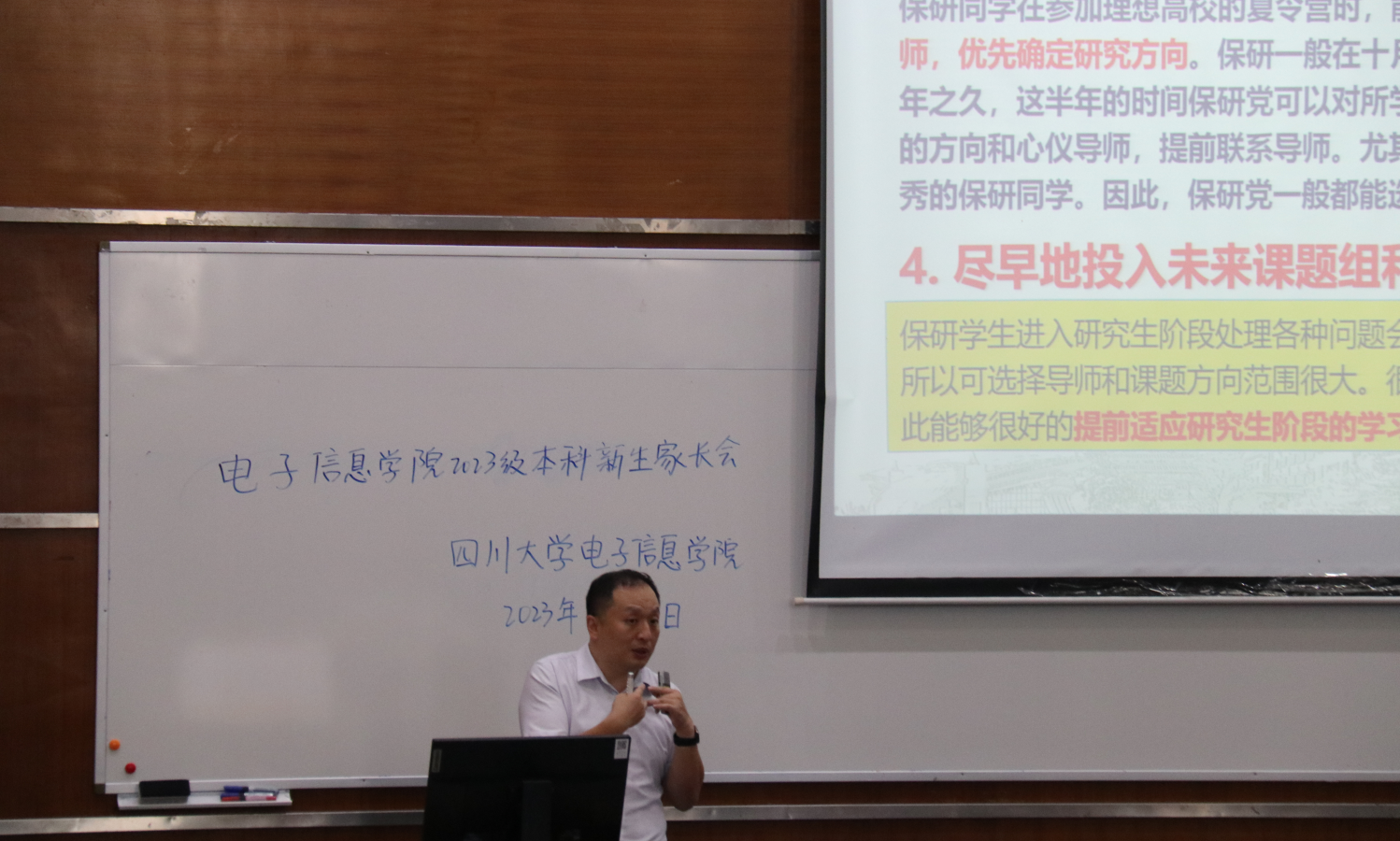随后,张启灿副经理从365英国上市集团的公司概况、团队队伍、培养体系等方面详细地向新生家长做了介绍,希望同各位家长一起帮助新生在公司度过充实美好的四年时光。雷印杰副经理详尽地介绍了公司本科生培养方案的内容,就考研、保研、出国、就业等不同形式的本科毕业发展方向进行了对比分析。