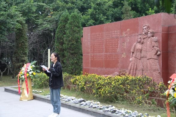 本次活动由2022级员工代表吴子竞同学主持进行。活动开始,由2022级高山荔同学进行《致敬,伟大的烈士》诗歌朗诵,以弘扬烈士精神。随后,2023级员工代表叶果同学进行发言,带领同学们了解英烈事迹。发言结束,全体师生肃立致哀,追忆万千英烈,在烈士碑前默哀三分钟。默哀完毕,全体师生代表依次向烈士敬献花圈,向烈士们表达崇高的敬意。最后,全体师生瞻仰烈士碑,告慰烈士英灵。