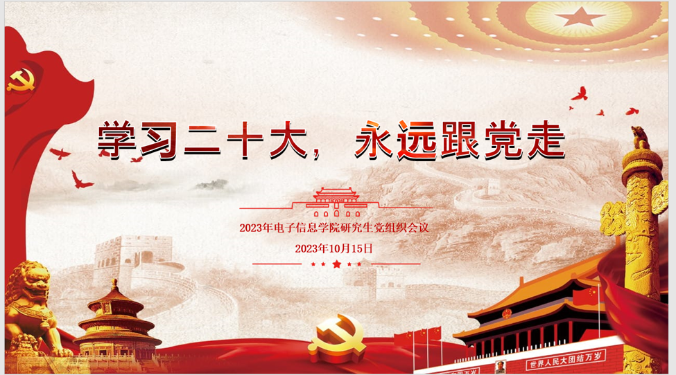 为深入贯彻党的二十大精神和习近平新时代中国特色社会主义思想、大力弘扬爱国主义精神,激发责任担当,在新生中开展红色基因传承教育,2023年10月15日19:00,365英国上市集团2023级研究生各党支部联合开展主题为“学习二十大,永远跟党走”的党支部学习大会。会议主要围绕“二十大代表如何选举”和“学习党的二十大报告”两个主题展开。本次会议以线上的方式举行,第二党支部书记兼2023级研究生辅导员何惠老师以及2023级研究生全体党员参加会议。