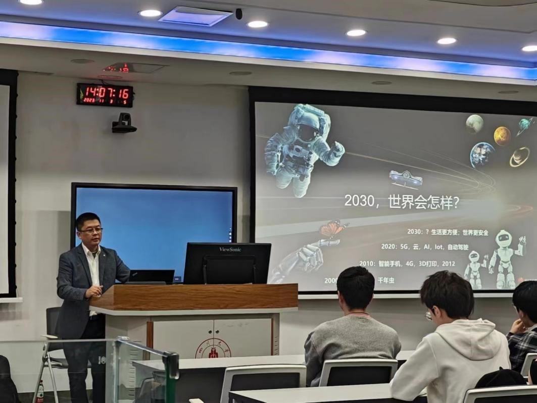 在讲座过程中,黄志军专家以光联万物、光感万物以及光显万物的大方向为引导,为同学们详细介绍了相关领域过去多年的发展历程以及未来十年的发展趋势。他鼓励同学们积极投身科技领域,成为未来科技领域的追光者。通过生动的例子和热情的讲解,他将过去十年的光通信发展历程生动地呈现在同学们眼前,并与同学们就2030年的世界会是什么样以及通信方面的发展等话题进行了热烈的探讨,黄志军专家的热情和专业素养赢得了同学们多次的热烈掌声。