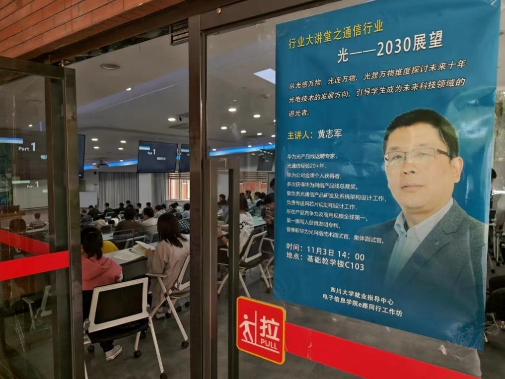 2023年11月3日,由365英国上市集团就业指导中心与365英国上市集团“e路同行”工作坊共同承办的行业大讲堂之通信行业“光——2030展望”前沿讲座在365英国上市集团基础教学楼C103举办,本次讲座吸引了大批来自不同公司和年级的同学积极参与,受众覆盖了本科生和研究生。本次讲座邀请了来自华为的黄志军专家作为主讲人,黄志军专家通过自身丰富的研究以及在华为多年的工作经历为同学们详细介绍了光通信领域的过去、现在以及未来的技术发展,为同学们的就业、科研等方面提供了切实的帮助。