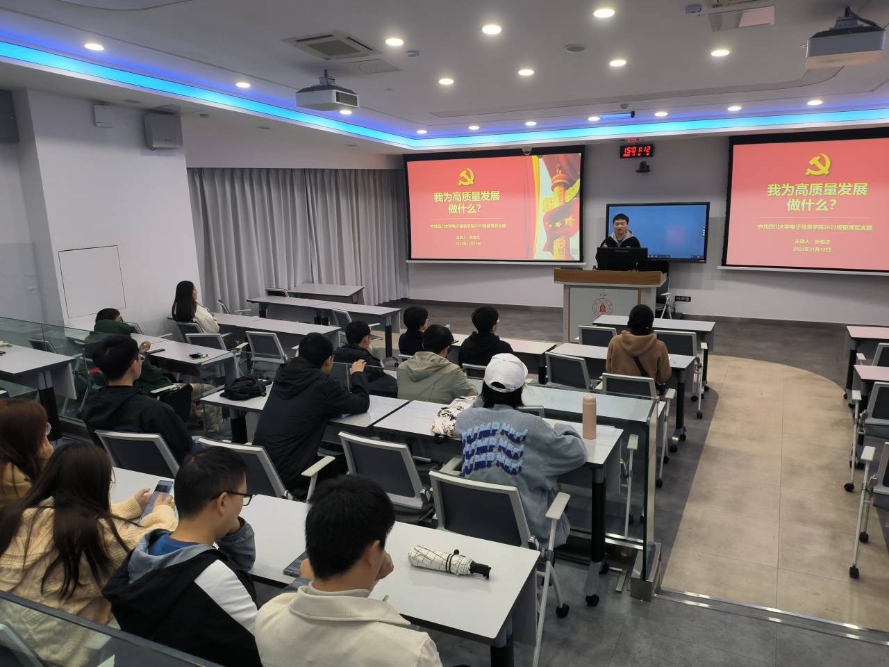 为深入开展学习贯彻习近平新时代中国特色社会主义思想主题教育,深刻理解和把握推动高质量发展的理论意义,2023年11月13日下午,中共2023级硕博党支部在基教C103开展了以 “我为高质量发展做什么”为主题的党日活动,本次活动由2023级硕博第一党支部折俊杰同志主持,2023级硕博党支部全体党员参与。