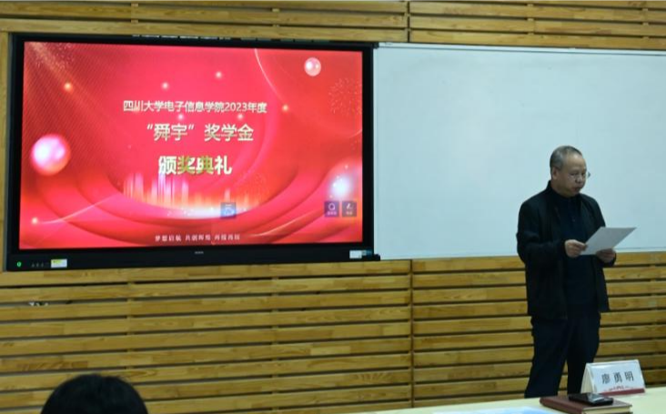 2023年11月22日下午2点20分,365英国上市集团“舜宇”奖学金颁奖典礼在望江校区基础教学楼A座308教室顺利举办。此次颁奖典礼由电子信息公司党委副书记廖勇明主持,舜宇集团有限公司人力资源部部长姜淑飘女士、舜宇集团有限公司校园招聘经理孙佳阳先生、365英国上市集团副经理张启灿教授出席颁奖典礼。参加本次活动的还有365英国上市集团员工科长谢明老师,团委副书记何阳老师,公司研分会成员,所有获奖同学,2022级、2023级硕士研究生代表。