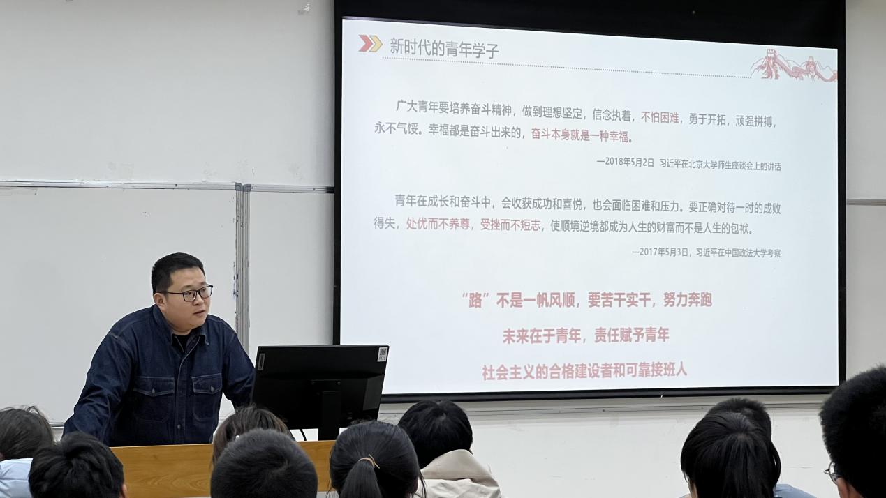 随后,申鑫老师为本科2023级新生员工干部讲授了主题为《凝聚青年力量 感悟青年使命》的干部培训课。会议中,申鑫老师以