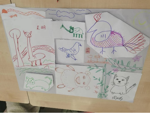 接着,她引导同学们在纸上画下自己最喜爱的动物,同学们用水彩笔在白纸上画下熊、猪、牛、马等各种动物,何老师也根据同学们画下动物的位置、大小、身体比例等对同学们内心的想法以及隐藏的压力进行了分析,促使我们更深入地了解了彼此的内心世界。在每个同学完成后,何老师让每一组的同学们将绘画动物粘在大的白纸上组建动物园,引导同学们看到动物园是由各种不同的动物组成,就像我们的团队,接纳不一样的人们。