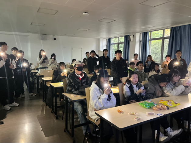 活动临近尾声,同学们将游戏环节得分最高的一组簇拥在中央,手持闪烁的手电筒,齐唱《夜空中最亮的星》,用歌声表达对班级友谊的祝福和美好未来的向往,本次联合团日活动至此划上圆满的句号。