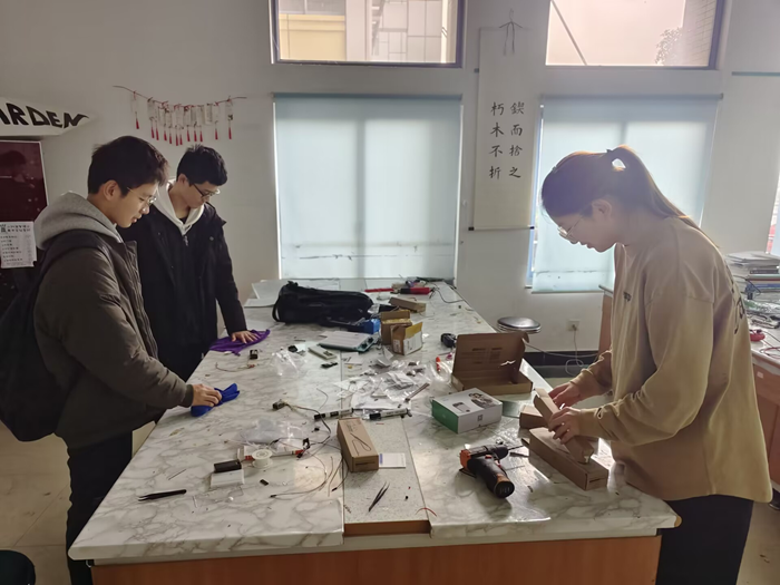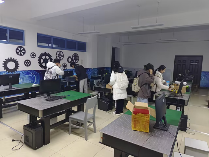 图 2 外联部同学们在收拾操作台