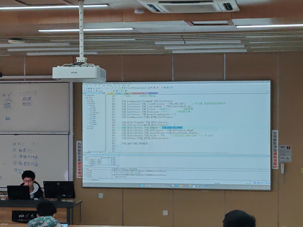 授课伊始,技术部的学长们讲解了PWM的基本原理和应用场景,使同学们对PWM的工作原理有了深入的了解,并掌握了在实际项目中如何灵活运用PWM技术。随后,授课进入Keil软件调试环节。学长们围绕Keil软件的基本操作、调试界面的使用以及常见问题的解决方法进行了详细的讲解。同学们通过实际操作,不仅学会了如何设置断点、单步执行等基本调试操作,还掌握了如何分析程序运行时的数据变化,从而快速定位并解决问题。授课过程中,同学们积极参与互动,提出了许多有关PWM技术和Keil调试的疑问。学长们耐心解答,并针对同学们的实际需求提供了实用的建议和解决方案。此次授课活动不仅提升了同学们的专业技能水平,也促进了电子科技园内部的交流与合作。