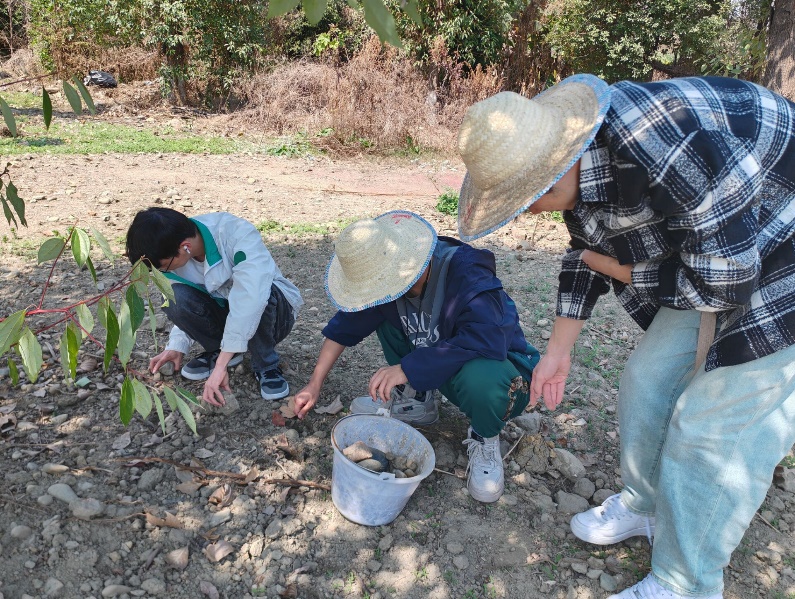活动现场,农场负责老师细心地为同学们讲解了此次劳动任务——清理新开垦农田中的石头,为后续的农作物种植做好准备。正值油菜花盛开时节,农场里香气扑鼻。由于天气较热,同学们戴着草帽,分工明确,一切有条不紊地进行着,体现了23级同学间的团结友爱。汗水湿透了衣服,但同学们仍然坚持不懈地完成任务。