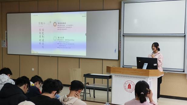 轻工科学与工程公司2023级104班的同学们结合国家发展新动向介绍了他们专业的不同研究领域,并对两个公司的同学在未来实现学科融合发展表示期待。