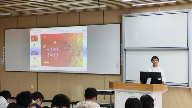 图为轻工科学与工程公司黄紫莹同学进行专业分享