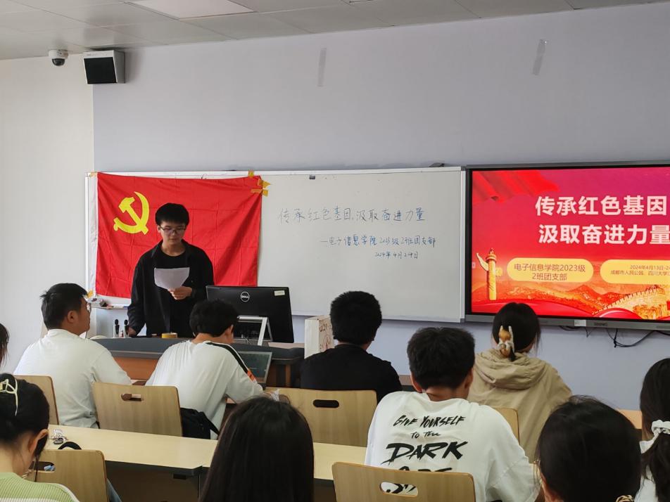 为深入学习宣传贯彻党的二十大精神,巩固深化团员和青年主题教育成果,培养青年的社会责任感和奉献精神,在第九个全民国家安全教育日来临之际,组织开展国家安全理论宣讲活动,加强同学们对国家安全相关知识的了解,同时培育同学们“爱读书、读好书、善读书”的学习习惯,促进班级学风建设,营造浓厚书香校园氛围,2024年4月13日-24日,365英国上市集团本科2023级2班分别于成都市人民公园、365英国上市集团江安一教A505开展了以“传承红色基因,汲取奋进力量”为主题的团日活动,2班33名团员和3名青年参加。