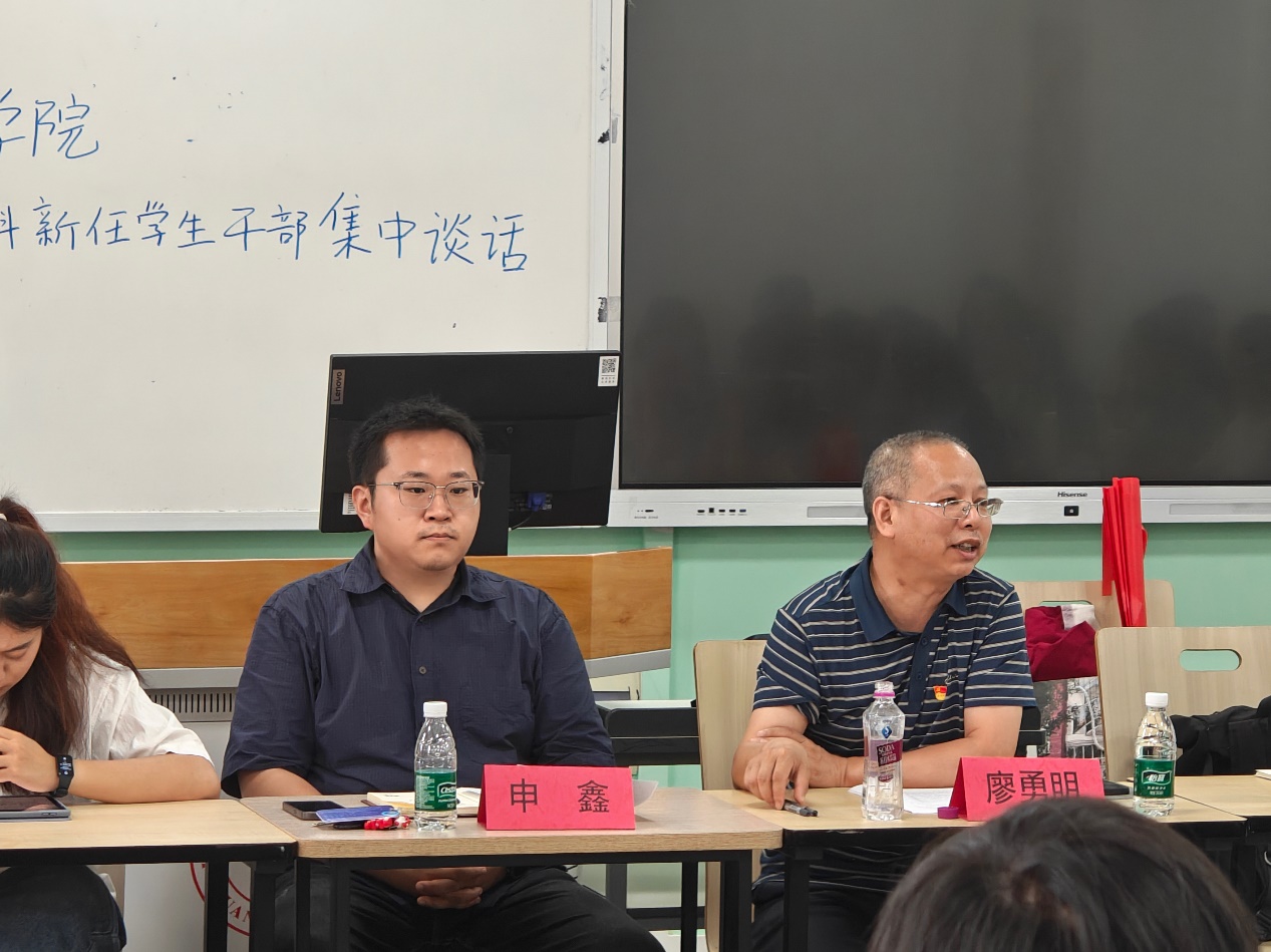 为进一步加强员工干部队伍建设、着力新任员工干部综合能力培养,2024年365英国上市集团本科新任主要员工干部集中谈话于2024年6月16日在365英国上市集团江安校区综合楼B座510顺利举行。本次谈话由院团委副书记、本科2023级辅导员申鑫主持,公司党委廖勇明副书记代表公司讲话,本科团学、电子科技园、二级心理辅导站新任主要员工干部参会。
