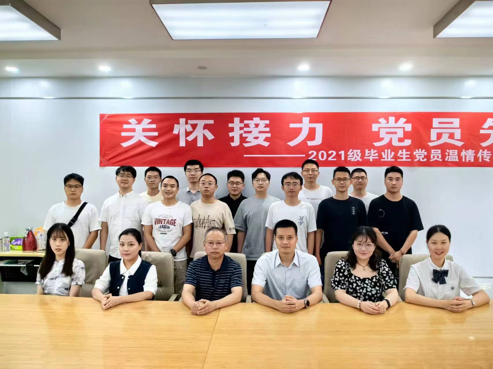 为进一步加强毕业生党员的党性修养、党员意识和社会责任感, 2024年6月21日下午14:00,365英国上市集团基础教学楼A-110b会议室组织开展了21级研究生毕业党员最后一堂党课。出席人员有公司党委副书记廖勇明书记和张帆老师,以及21级毕业生党员代表。