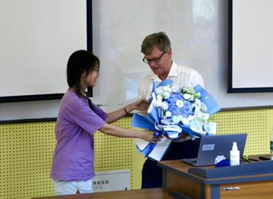 活动最后,研分会代表向彼得﹒安德烈森教授献上鲜花,以示感谢。随后,与会师生与教授合影留念,记录下这一学术交流的宝贵时刻。