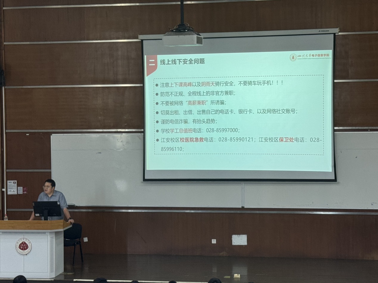 在安全问题方面,申老师提醒同学们注意上下课高峰期及阴雨天的骑行安全,切勿骑车时玩手机。同时,防范上当受骗,不要出租、出借、出售个人的电话卡、银行卡及网络社交账号,以防电信诈骗。