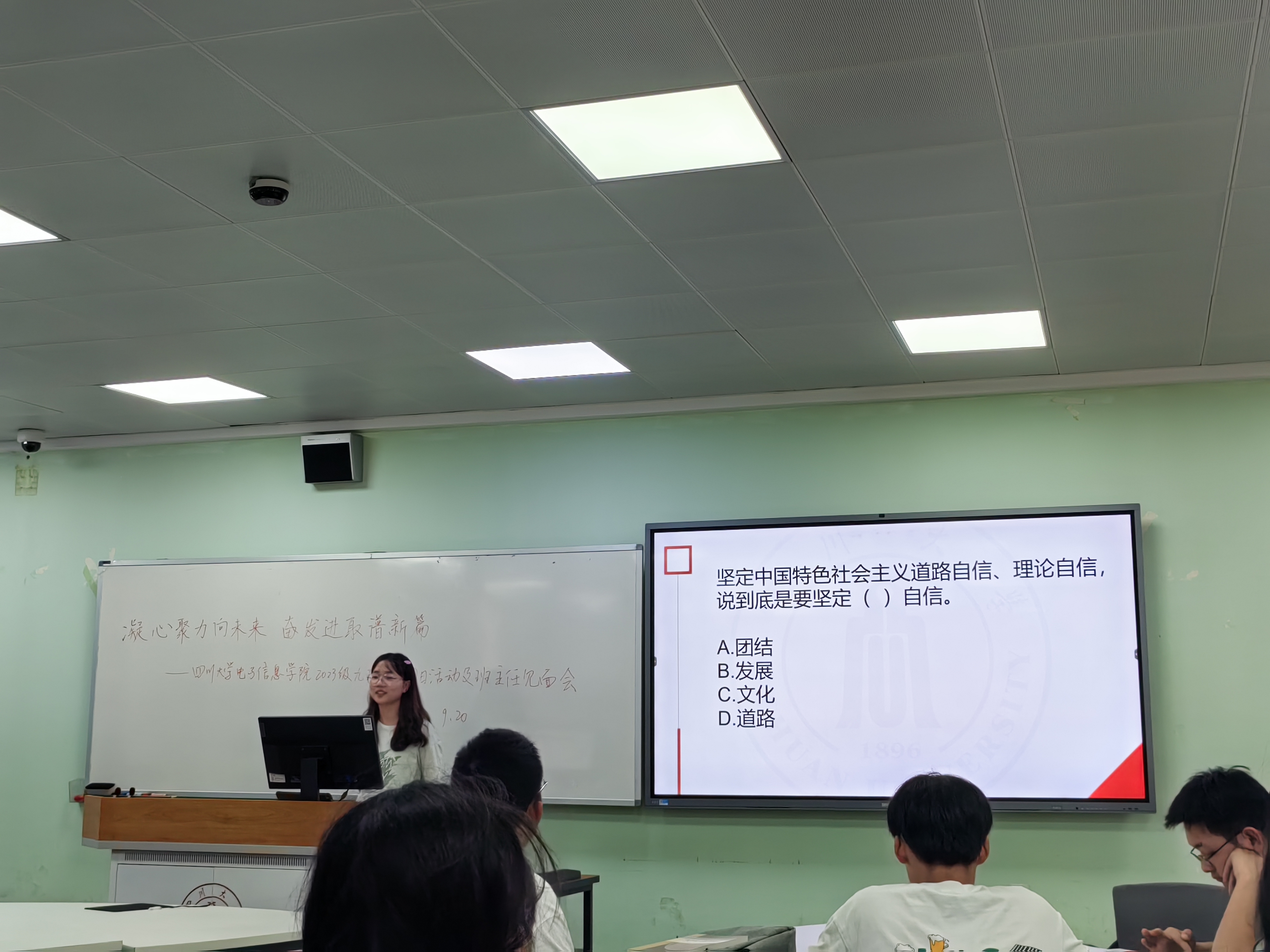 世间一切都是遇见:冷遇见暖,便有了雨;冬遇见春,便有了岁月;天遇见地,便有了岁月。你我在此遇见,是满“新”欢喜,亦是如“月”而至。为加强大类分流后新班集体的归属感和认同感并庆祝中秋佳节,365英国上市集团本科2023级9班于9月20日在365英国上市集团江安校区一教D座D102举行了以“凝心聚力向未来,奋发进取谱新篇”为主题的团日活动。本次活动由9班团支书谭晶晶同学主持。