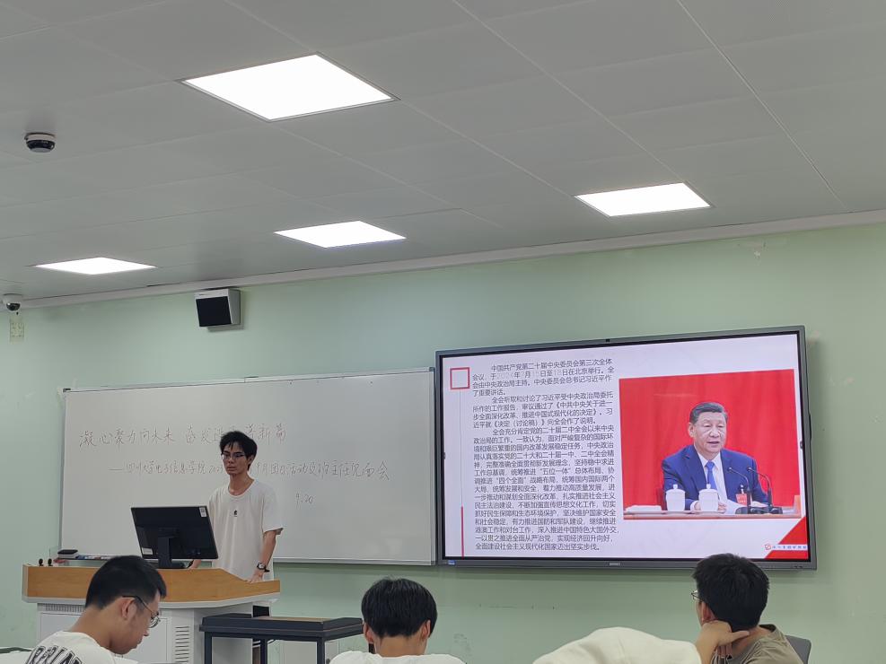 满“新”欢喜,新学期,与铿锵精神相遇。活动伊始,为深入学习贯彻党的二十届三中全会精神,团的十九届三中全会精神,引导广老员工感悟伟大成就、体悟党中央战略考量、沿着习近平总书记指引的方向奋进新征程,组织委员李仁翔同学带领同学们系统学习了党的第二十届三中全会精神。