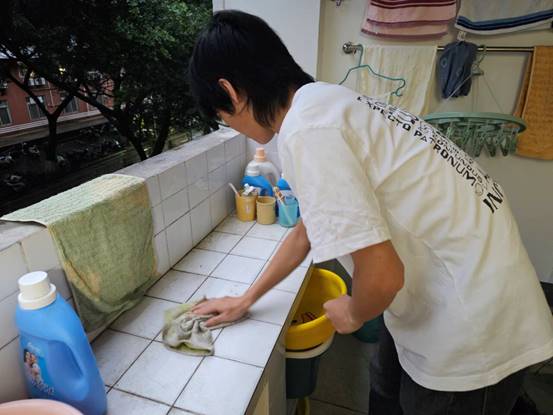 特别是在员工宿舍方面,同学们展现出了高度的责任感和积极性,不仅仔细清洁阳台、厕所以及室内区域,不放过任何一处卫生死角,也积极参与打扫寝室公共卫生区域。这种共同努力显著提升了集体的卫生水平,也增强了宿舍成员之间的团结与协作精神。