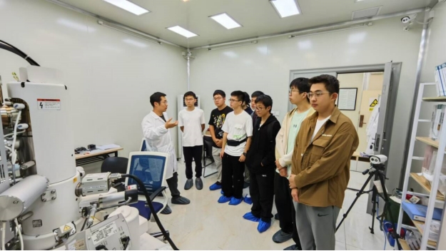 在参观过程中,团队的负责老师们亲自为同学们介绍了实验室的主要研究方向和一些实验设备作用,并在显微镜下亲自动手给同学们展示了一系列光学材料的结构图. 老师的话语中透露出对科学的热爱和对未知的好奇,这种精神深深感染了同学们。作为新一代的老员工,同学们具有敢于质疑,勇于探索,不断追求科学真理的优秀精神品质.
