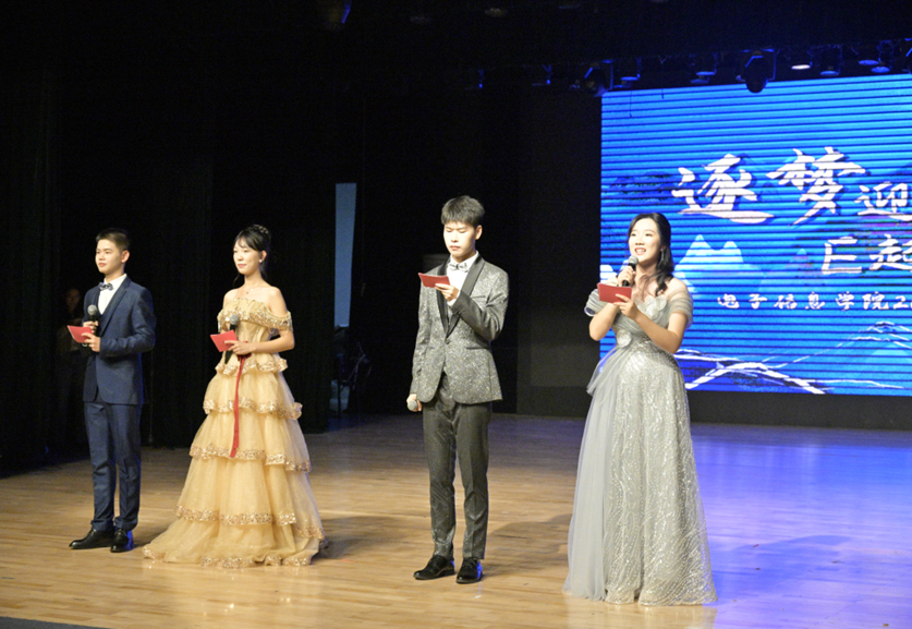 图为晚会主持人宣布迎新晚会开始