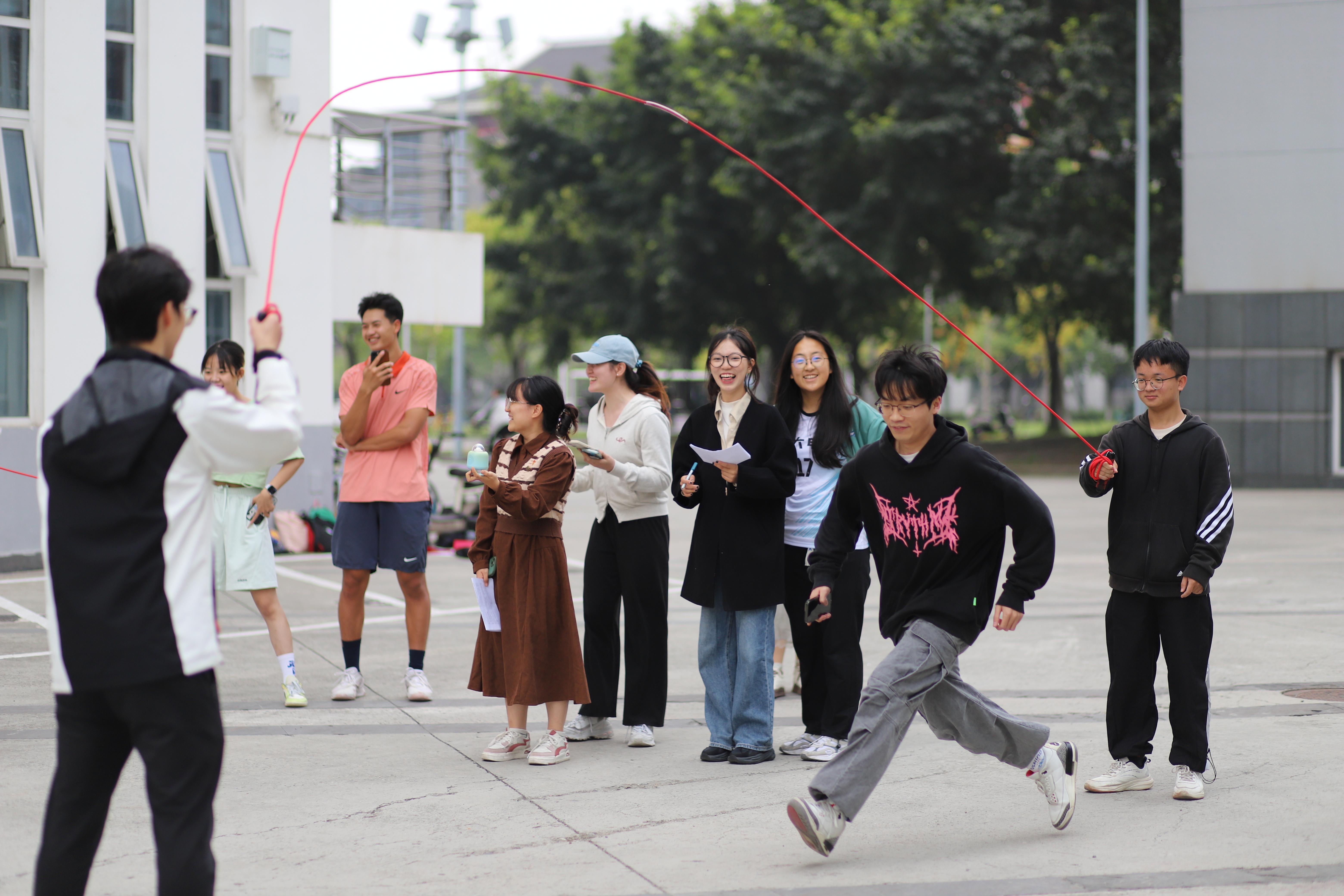 随后,活力与激情在活动中交织。我们将跳大绳与猜红歌相结合,迎面接力与红色知识竞答相结合,两所公司进行了激烈的PK竞赛。在运动中学习,在学习中感知爱国力量,欢声笑语不断响彻整个场地,充分展现了同学们的青春风采。