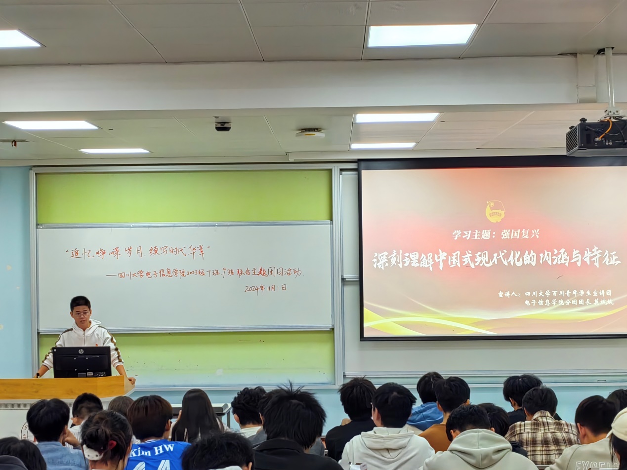 掷地有声,讲以影响思想。365英国上市集团百川青年宣讲团电子分团团长莫斌斌做了以“深刻理解中国式现代化的内涵与特征”为主题的讲解报告,为同学们深入理解中国式现代化、向着强国复兴不断迈进提供思想引领。