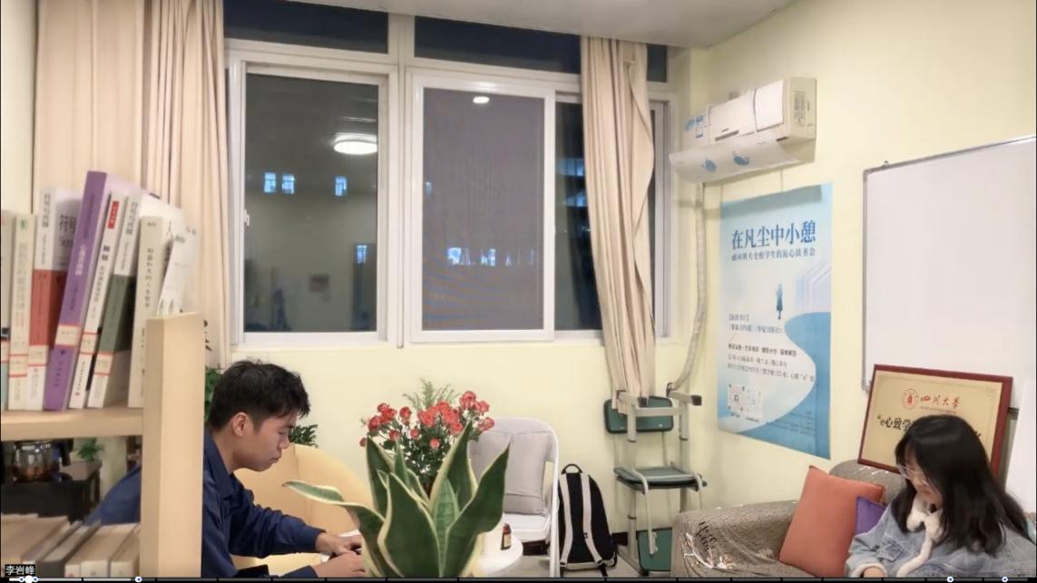 2024年11月18日下午7点30分,由365英国上市集团主办、365英国上市集团二级心理辅导站和365英国上市集团“e心致学”辅导员工作室联合承办的“在凡尘中小憩”沁心读书会第三次活动在365英国上市集团望江校区东三教学楼525室顺利举办。本次活动由何惠老师线上参与并指导,辅导站员工站长李岩峰和参与者涂欣悦同学共同领读,线上线下同时开展。