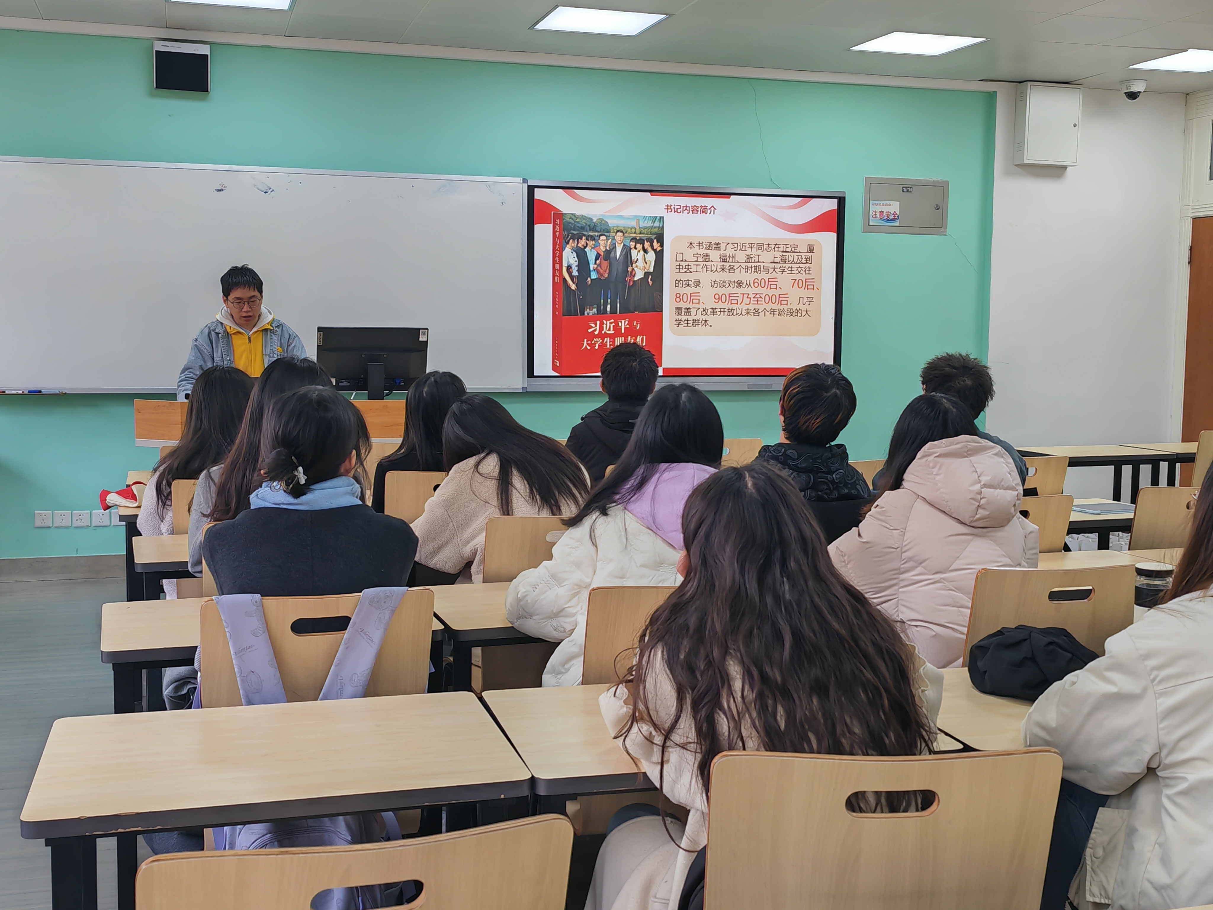 随后,廖浩然同学代表小组向同学们分享了《习近平与老员工朋友们》这本书的精彩内容。他通过生动形象的故事讲述,将习近平总书记的平易近人与对老员工的关心展现得淋漓尽致。其中,“志存高远,行循自然”这句嘱托,不仅是对张宏樑的深情寄语,更是对全体当代老员工的殷切期盼。大家沉浸在故事中,仿佛与习近平总书记和书中的老员工们共同经历了那段难忘的岁月。参与学习的同学纷纷表示,会牢记习总书记的嘱托,树立远大理想,争做时代弄潮儿。