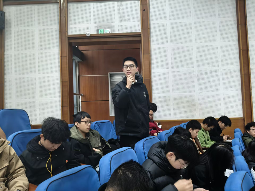 大会开始,主持人带领全体同学合唱团歌。接着,郑雪老师围绕人造太阳的相关知识与应用挑战与磁约束可控核聚变研究现状与中国在此方面的创新成果为我们带来了一场意义非凡的授课,通过介绍此项研究的重要意义与研究者背后的故事,在场员工们受益匪浅,坚定了为国奉献的信念。为引导员工进一步深入思考中国现代化进程中的关键议题,在随后的分组讨论环节,同学们就主持人提出的三个问题进行了深入思考,并踊跃分享自己的见解和想法。