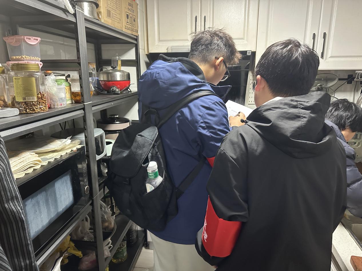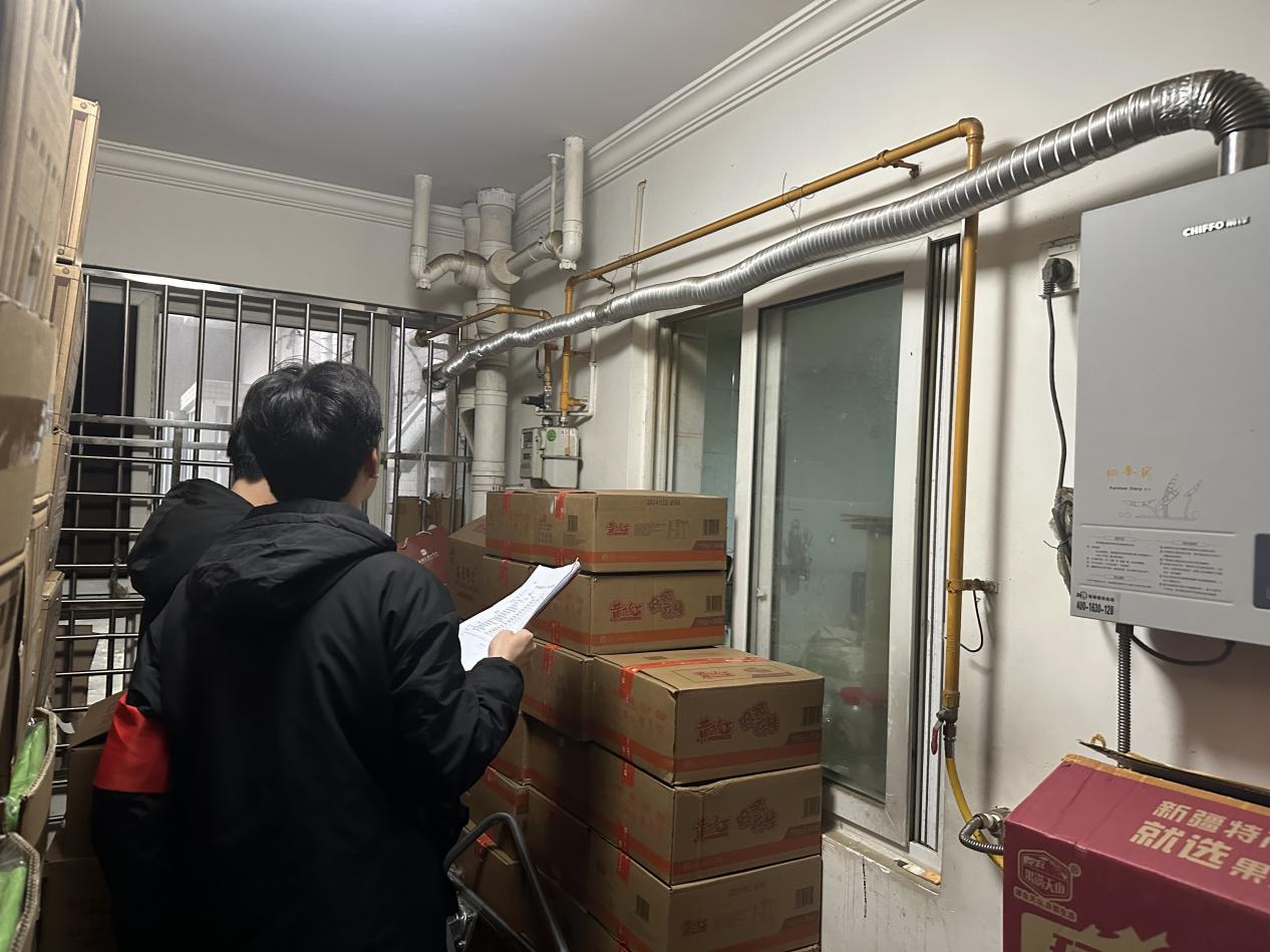 图为志愿者检查燃气安全隐患