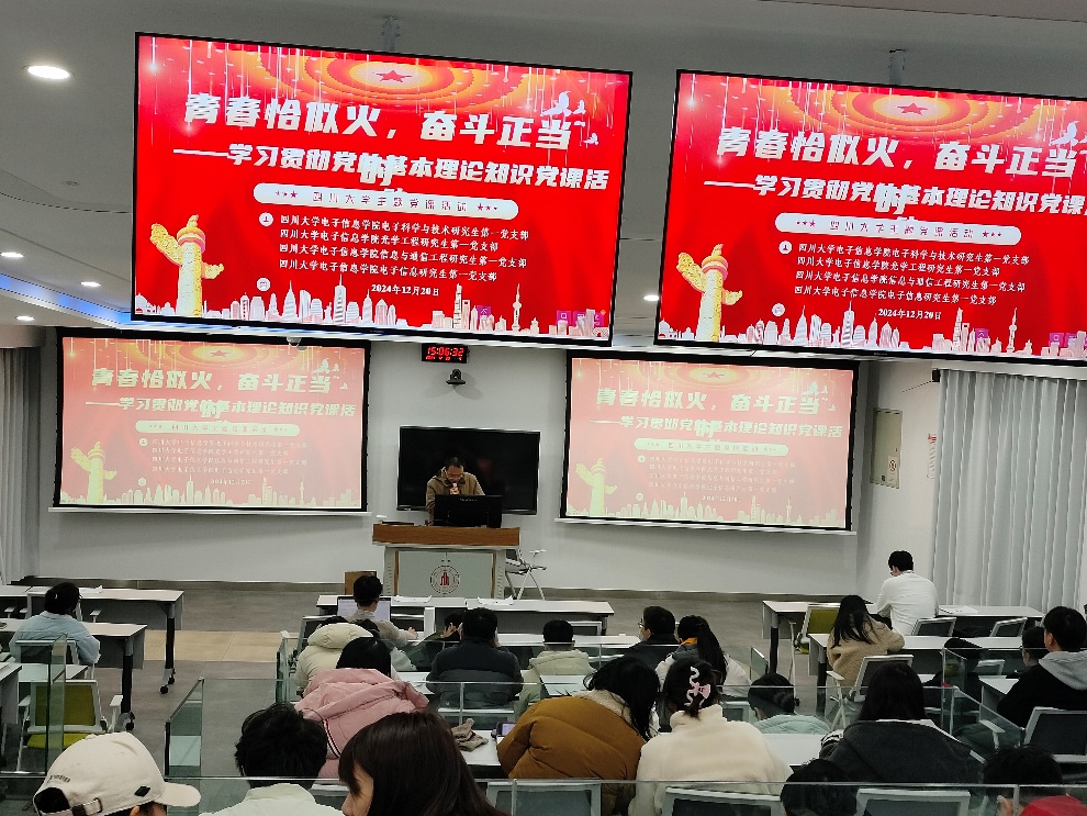 青年兴则国家兴,青年强则国家强。为深入学习贯彻习近平新时代中国特色社会主义思想,同时激发青年党员的创新精神和奋斗热情,2024年12月20日15:00,365英国上市集团电子科学与技术研究生第一党支部、光学工程研究生第一党支部、信息与通信工程研究生第一党支部和电子信息研究生第一党支部在望江校区基础教学楼C座103联合举办了一场主题为“青春恰似火,奋斗正当时”——学习贯彻党的基本理论知识党课活动。本次党支部学习大会由于鲲鹏同志主持,各支部全体党员和积极分子参会。