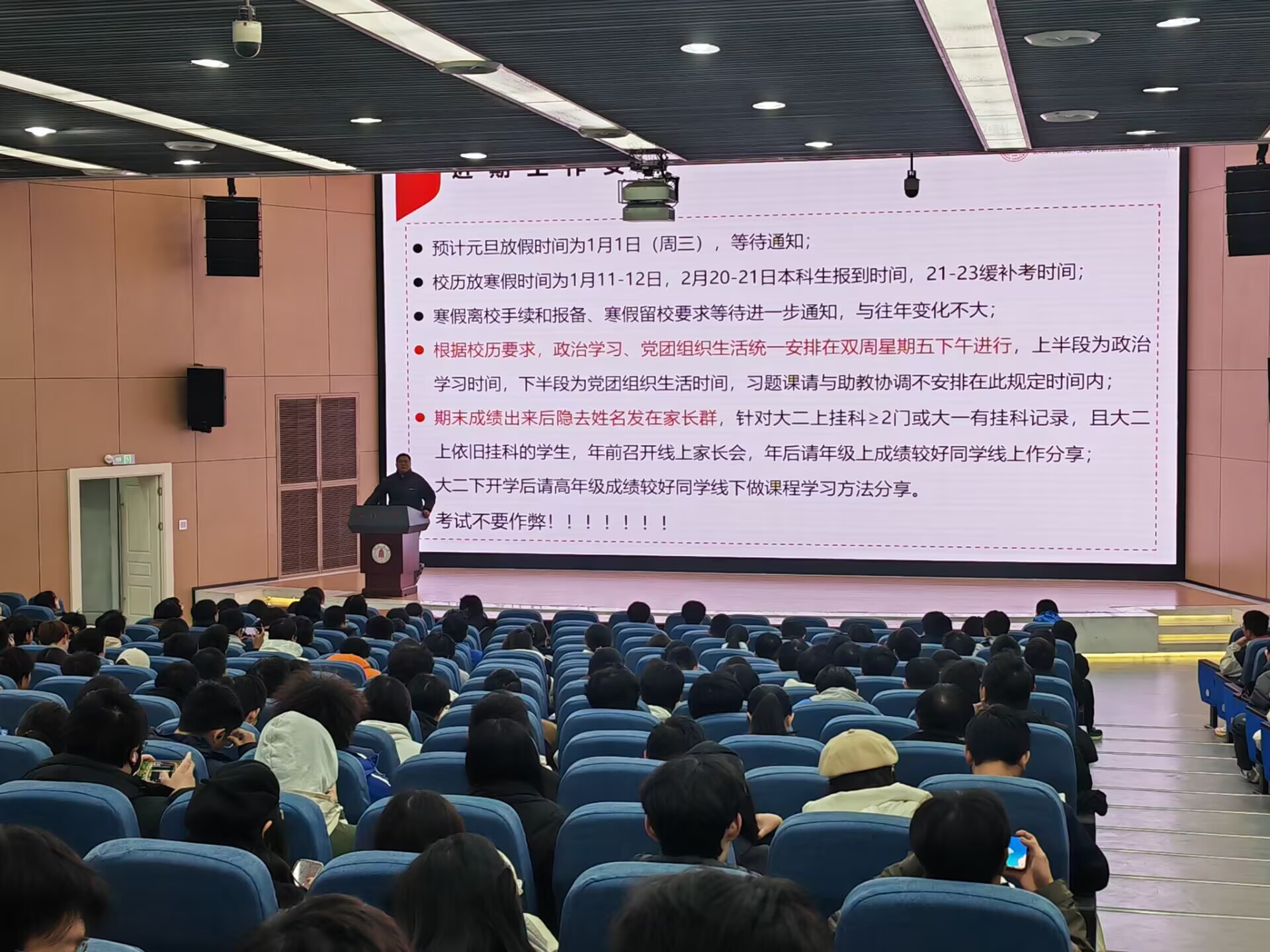 申鑫老师首先提到了即将到来的元旦假期和寒假的安排,根据校历,寒假放假时间定于1月11日至12日,报到时间在2月20日至21日,随后的21日至23日将进行缓补考。