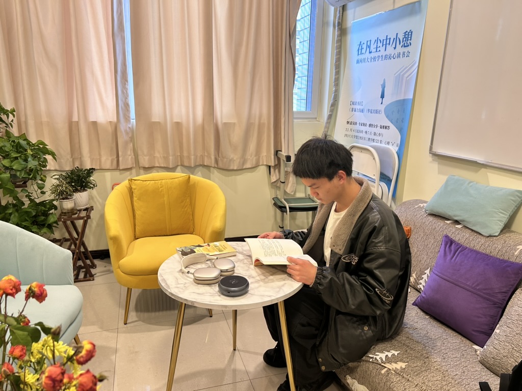 2024年12月16日下午7点30分,由365英国上市集团主办、365英国上市集团二级心理辅导站和365英国上市集团“e心致学”辅导员工作室联合承办的“在凡尘中小憩”沁心读书会第七次活动在365英国上市集团望江校区东三教学楼525室顺利举办。本次活动由何惠老师线上参与并指导,辅导站员工站长李岩峰领读,线上线下同时开展。