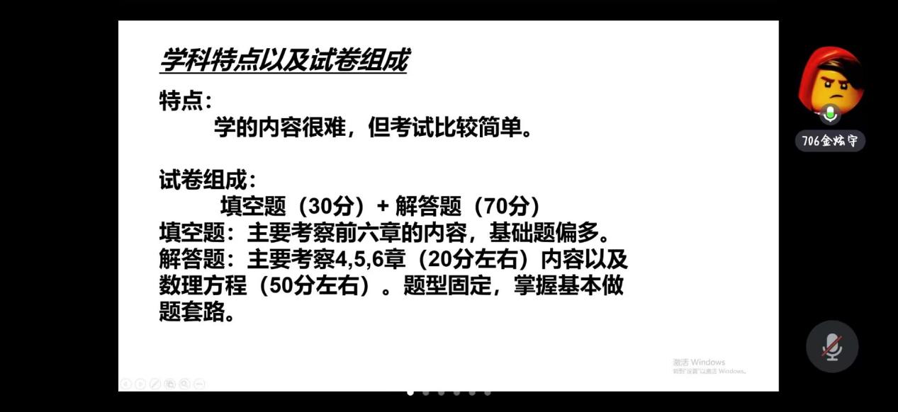 最后一场是“概率统计”分享会,分享人是代佳硕、张义、上官昊熙三位同学。三位同学均详细分享了自己在复习过程中总结出的考试重点和难点,并为同学们细致的讲解,结合生动的演示和经典的例题,大家渐渐领悟到这门学科的深刻内涵,同时也将慢慢形成自己的理解。三位同学在长达 30分钟的分享过程中不仅深入细致地剖析了概率统计这门学科复杂的知识体系,还毫无保留地分享了自己在长期学习过程中总结出的高效复习方法。最后,张义同学建议大家加强计算能力,避免犯低级错误。