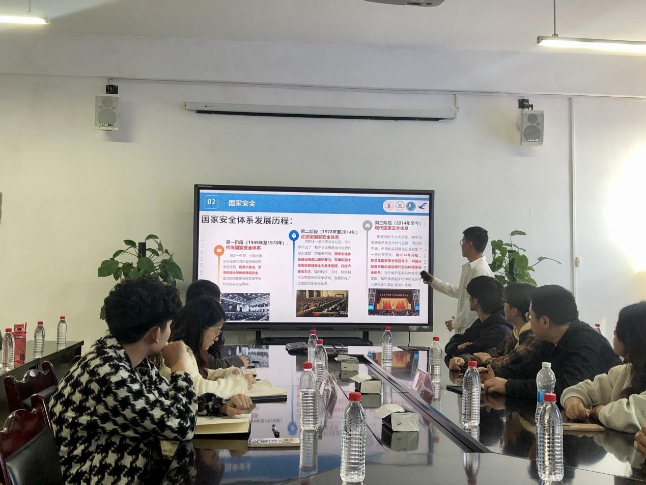 图为莫斌斌同学进行国家安全体系发展历程讲解