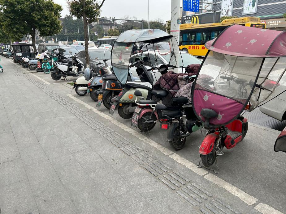 上午9时,志愿者们准时集合,迅速分为两组投入工作。一组志愿者手持扫帚、垃圾袋等清洁工具,认真清扫盲道上的垃圾杂物,确保视障人士出行路径畅通无阻;另一组志愿者则负责规范停放占用盲道的非机动车,他们耐心地将一辆辆共享单车和电动车搬离盲道,整齐摆放至指定停车区域。