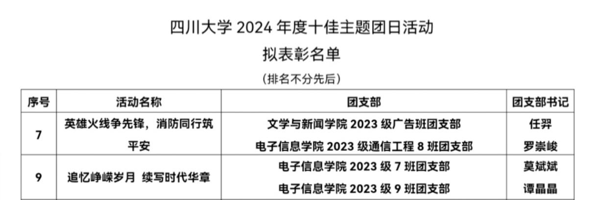 为进一步加强基层团组织建设工作,激发基层班团组织活力,加强团员青年思想政治引领,引导团员青年在主题鲜明、生动活泼的主题团日活动中受教育、得启示、获成长,校团委开展了2024年度优秀主题团日活动评选工作。在众多参选活动中,公司2023级7班与9班团支部联合举办的“追忆峥嵘岁月,续写时代华章”主题团日活动、2023级8班团支部与文新公司团支部举办的“英雄火线争先锋,消防同行筑平安”主题团日活动脱颖而出,成功入选2024年度十佳主题团日活动。