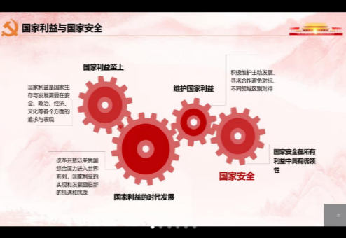 活动第二阶段是读书分享会。首先是张中豪、贺炫凯小组带来《大国安全——中国系列丛书》这本书的分享。贺炫凯同学先细致讲解了什么是总体国家安全观及其五大辩证关系,他结合国内外时事热点,让大家对总体国家安全观有了更为深刻且全面的认知。张中豪同学列举了详实的图表和数据,就南海问题和海洋安全谈了中国在维护南海海洋安全方面所做出的努力。