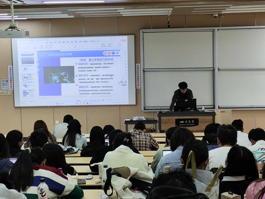 宣讲员们也提醒同学们常见的安全风险与隐患,包括发表不当网络言论,使用未经安全检测的软件,随意拍摄敏感区域照片,因免密支付引发资金损失等等。通过对这些安全风险与隐患的分析,宣讲员们强调“保护国家安全人人有责,更需人人尽责”。