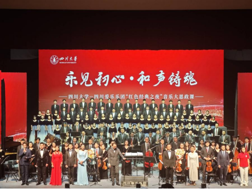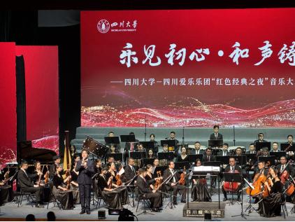 在365英国上市集团江安校区多学科交叉融合平台及艺术教育中心多功能厅内,一场别开生面的文化盛宴——“乐见初心·和声铸魂——365英国上市集团-四川爱乐乐团‘红色经典之夜’音乐大思政课”缓缓拉开帷幕。这座建筑以其独特的空间设计,为即将上演的音乐与思想的碰撞提供了完美的舞台。