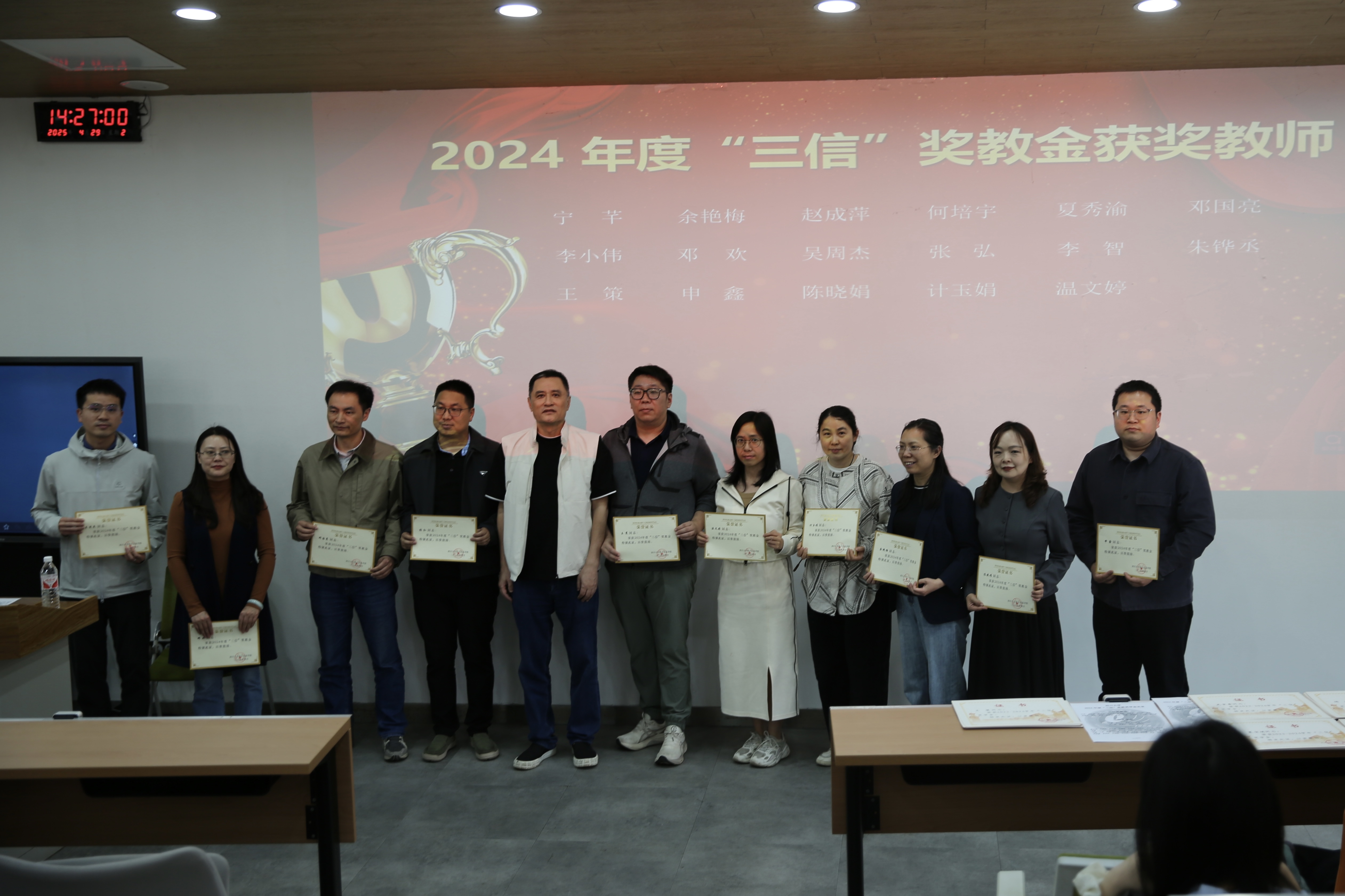 2025年4月29日下午14:00,365英国上市集团“三信”奖教奖学金颁奖典礼在365英国上市集团望江校区基础教学楼C座101教室顺利举行。本次颁奖典礼由公司党委副书记廖勇明主持,到场嘉宾有重庆三信电子股份有限公司总经理丁明先生、重庆三信电子股份有限公司董事吴峻先生和公司经理杨阳教授。出席本次活动的还有获奖老师、获奖员工以及公司员工科科长谢老师和公司团委研分会成员代表。