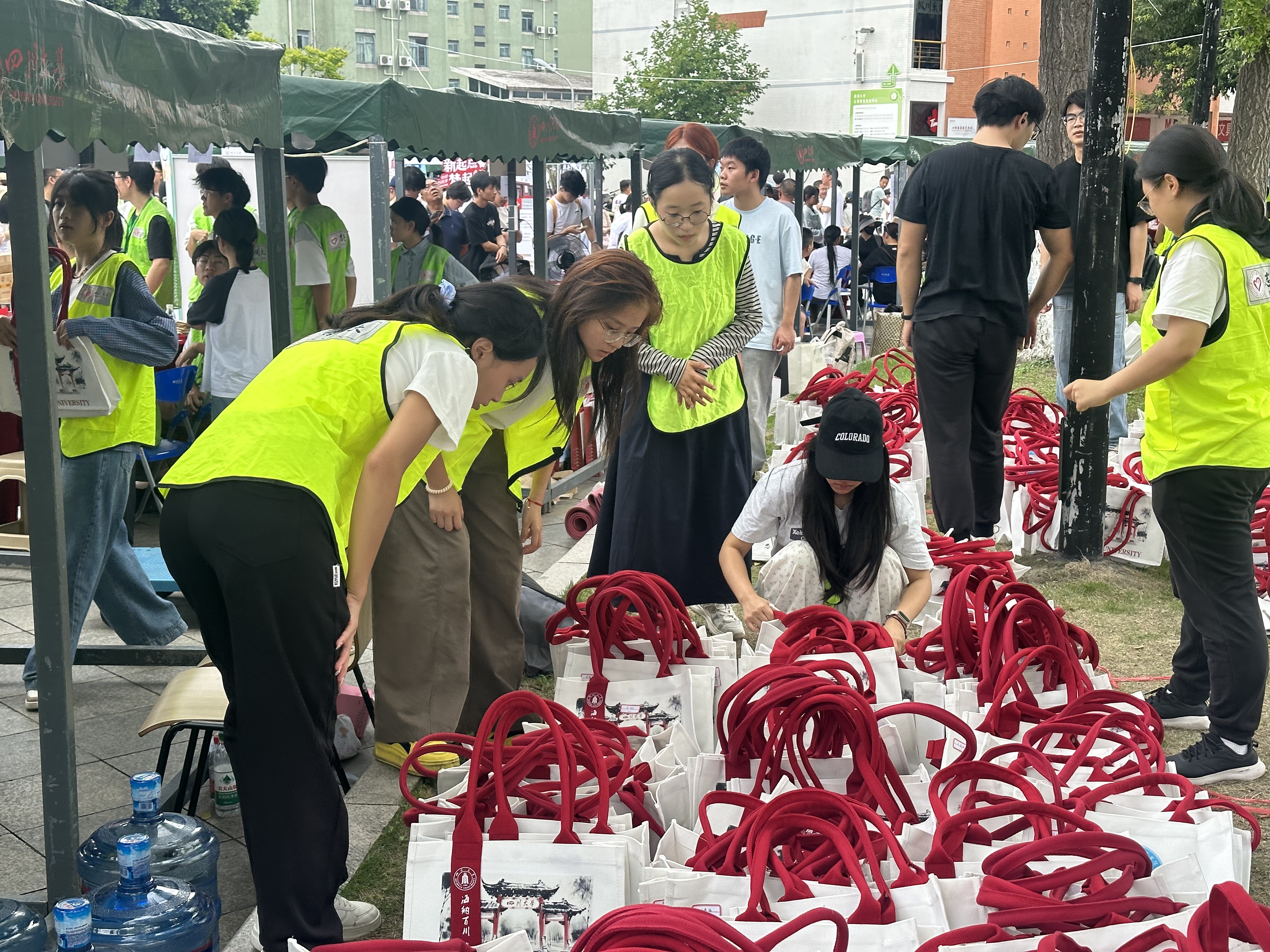 为确保迎新工作高效推进,公司团委员工组织提前发力,精心筹备各类迎新物资:设计制作主题鲜明的迎新展板,清晰展示校园地图、报到流程与公司特色;定制包含校园指南、公司介绍的迎新手袋与新生手册,将实用信息与人文关怀融入细节,为新生快速熟悉校园、了解公司搭建“第一窗口”。同时,公司面向全院招募组建了一支责任心强、热情主动的志愿者队伍,提前开展岗前培训,明确接待登记、物资发放、行李搬运、校园向导等岗位职责,为现场服务筑牢基础。
