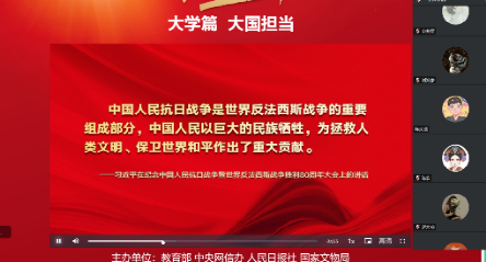 2025年9月18日,值中国人民抗日战争暨世界反法西斯战争胜利80周年之际,2025级硕博研究生组织学习“大国担当”思政大课,以线上集中参与和线下自主观看的方式进行,同学们在历史与现实的交融中感悟精神力量。