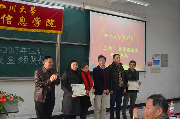 三信奖学奖教金的颁发不仅奖励了那些潜心于基础科学研究的教师和品学兼优的员工,也激励了更多的川大教师和学子自强不息,艰苦奋斗,在自己研究领域有所作为。正如习近平总书记在十九大报告中所述:“青年兴则国家兴,青年强则国家强”,作为新时代的优秀青年,老师与员工都要结合自身优势,为中国电子信息产业的发展做出贡献,为社会主义现代化的崭新篇章努力奋斗。