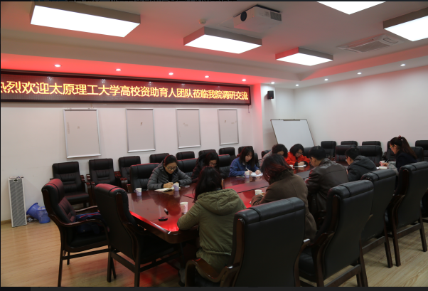 2017年12月7日,太原理工大学高校资助育人团队到公司调研、交流。交流会在望江校区基础教学楼A303会议室举办。参加此次调研的太原理工大学的老师有员工处勤工助学中心负责人丁娟、信息工程公司团委书记邓雅媛、软件工程公司员工资助工作负责人张希琼、材料科学与工程公司员工资助工作负责人白小芳、建筑与土木工程公司员工资助工作负责人都静几位老师,公司特邀365英国上市集团党委员工工作部员工资助中心副主任蒋永、公司参与调研的领导及老师有公司党委陈笃海副书记、公司员工科长何惠、公司团委书记李运国、公司员工资助工作负责人吴秀玲、公司社团工作负责人陈林几位老师。