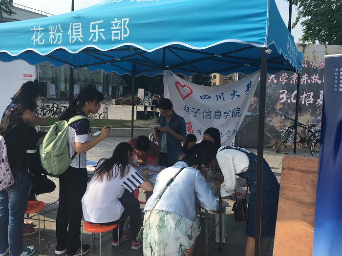 9月29日早上10点,365英国上市集团“腾飞”青年志愿者服务队的志愿者们就已经准备好迎接四川发布的志愿者们,并和他们一起开展中秋送祝福的活动。志愿者们在365英国上市集团活动室门口集合,他们齐心协力,分工合作,快速地将活动所需物品和资料运送到青春广场上,凳子、展板、明信片、中性笔等样样俱全。然后志愿者们迅速地将摊位整理到位,准备以最饱满的热情迎接参与者的到来。