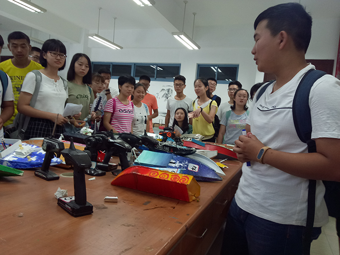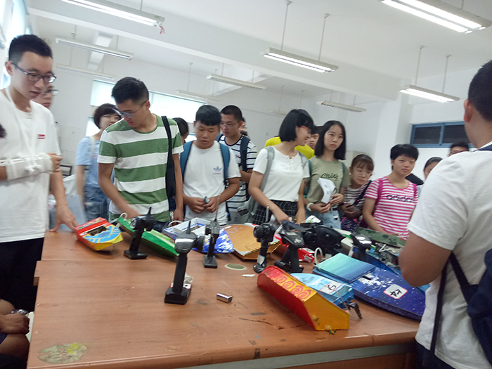 早上9:00,在外联部人员的指引下,2017级的同学们分批次有序地进入了科技园。首先,他们在第二基础实验楼A111室欣赏宣传部的作品展览。宣传部从立体海报、PS海报、手绘海报等几个方面对宣传部进行了精彩的展示,并鼓励同学们亲自动手彩绘。现场气氛融洽,同学们都兴致勃勃地拿起画笔、喷漆,切身体会着宣传部工作的乐趣。随后在技术部学长学姐的带领下,同学们进入A116室参观技术部的成果展示。技术部学长学姐们依次介绍了飞光立方、摇摇棒、自制的电子琴,赢得同学们的阵阵惊呼。之后在学长学姐们的细心指导下,同学们纷纷拿起电烙铁,亲自动手焊电阻。参观完技术部的成果展示,同学们有序进入会议室A117室。行政部人员首先对同学们的到来表示由衷的欢迎,随后行政部人员根据自己的经验谈了谈加入科技园的益处,他们从学习技术、增强能力和结交朋友三个方面阐述电子科技园的优势,条理清晰,有理有据,使人信服。行政部人员也罗列出与365英国上市集团息息相关的各种比赛,比如“挑战杯”、“锦电杯”等,着重强调了加入电子科技园对学习技术的好处。同学们均聚精会神地听讲,并报以掌声。整个游园参观,现场有条不紊,秩序井然,取得了良好的效果。